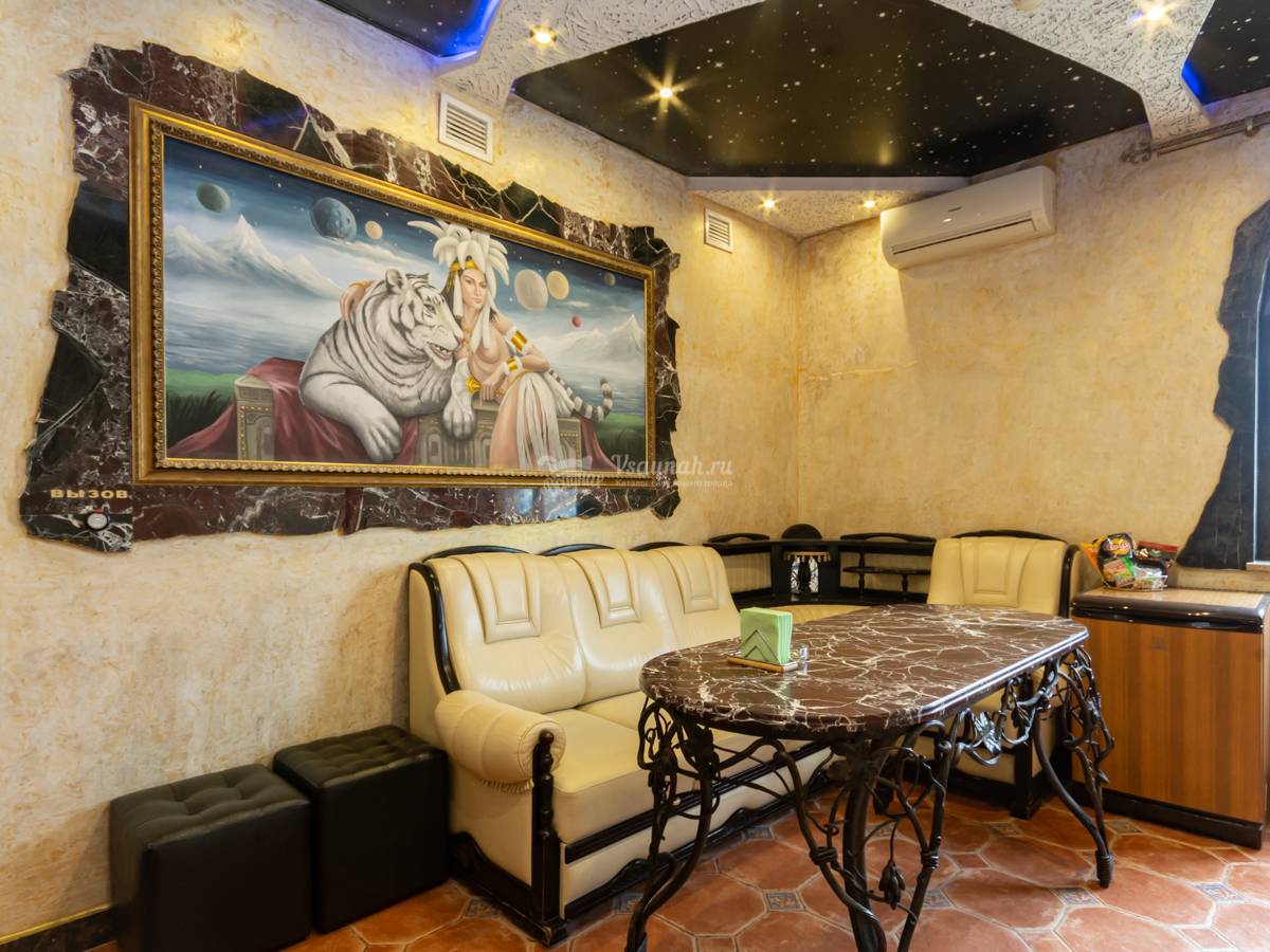Большой зал сауны «Мармарис» предлагает парение в настоящей русской баньке и способен комфортно разместить компанию до 20 персон, что делает его отличным выбором не только для традиционного парного досуга, но и празднования любых торжеств. Стоимость его посещения составляет 1500 руб/час.